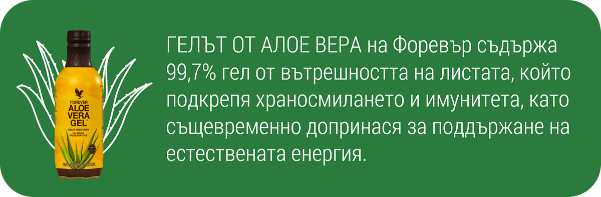 Не е задължително всекидневната подкрепа на доброто ни състояние да е сложна. Именно затова и ГЕЛЪТ ОТ АЛОЕ ВЕРА на Форевър е толкова простичък – 99,7% чист гел от вътрешността на листата.