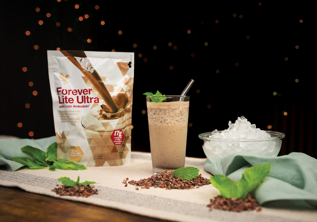 Свеж и кремаст со мало здраво задоволство, овој шејк комбинира свежо нане и какао зрна со богатиот вкус на FOREVER LITE ULTRA CHOCOLATE. Вкусен десерт за балансиран и контролиран режим.